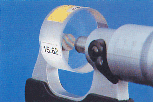 将外径千分尺紧固在夹具上,在两测量面间放入尺寸系列为2.5;5.1;7.7;10.3;12.9;15.0;17.6;20.2;22.8和25mm的一组1级精度的