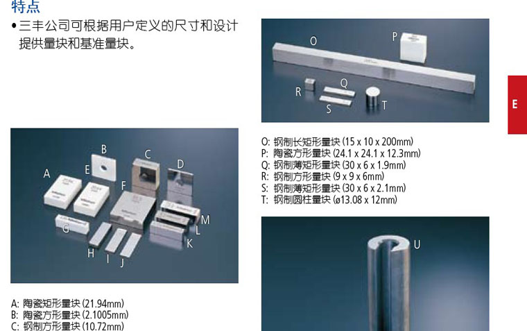 三丰公司可根据用户定义尺寸和设计提供量块和基准量块