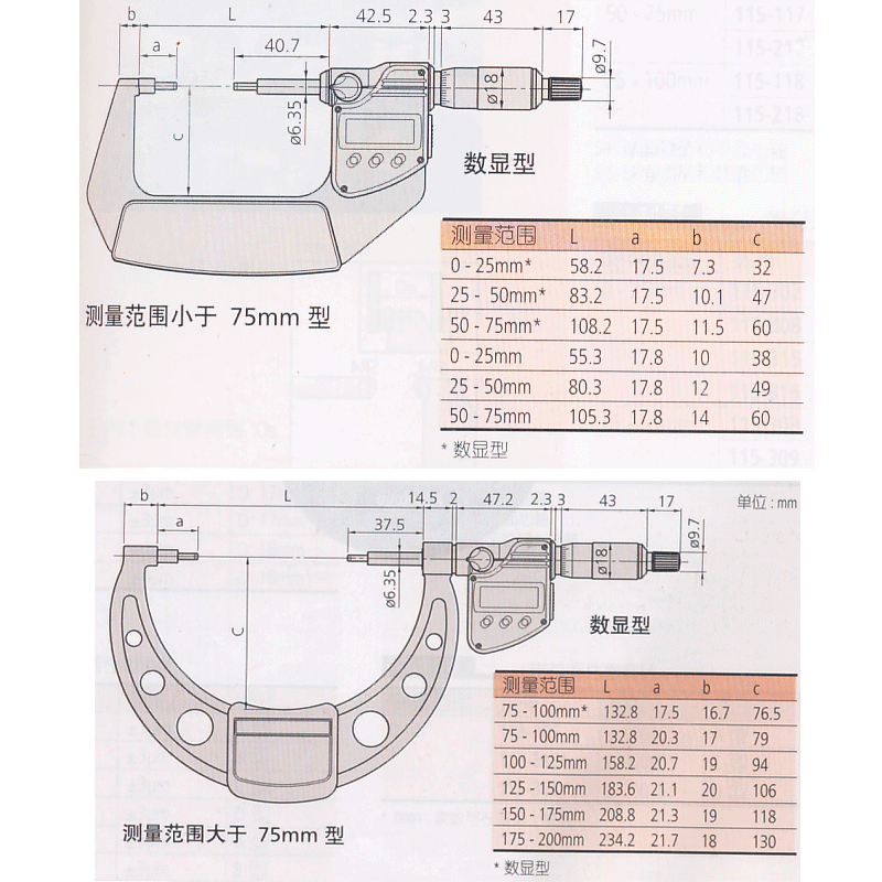 | 订货号 | 厂家货号 | 测量范围(mm) | 精度 | L(mm) | a(mm) | b(mm) | c(mm) | 备注 | 市场价 | 促销价 | 购买 |