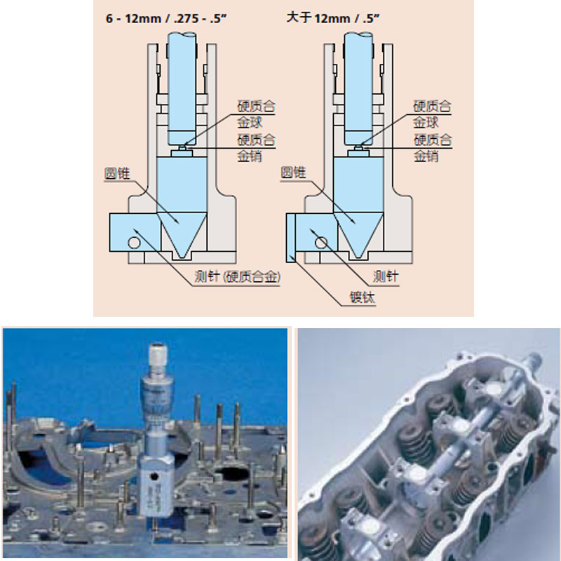 测针固定在钳夹上,可直达盲孔底端测量内径。